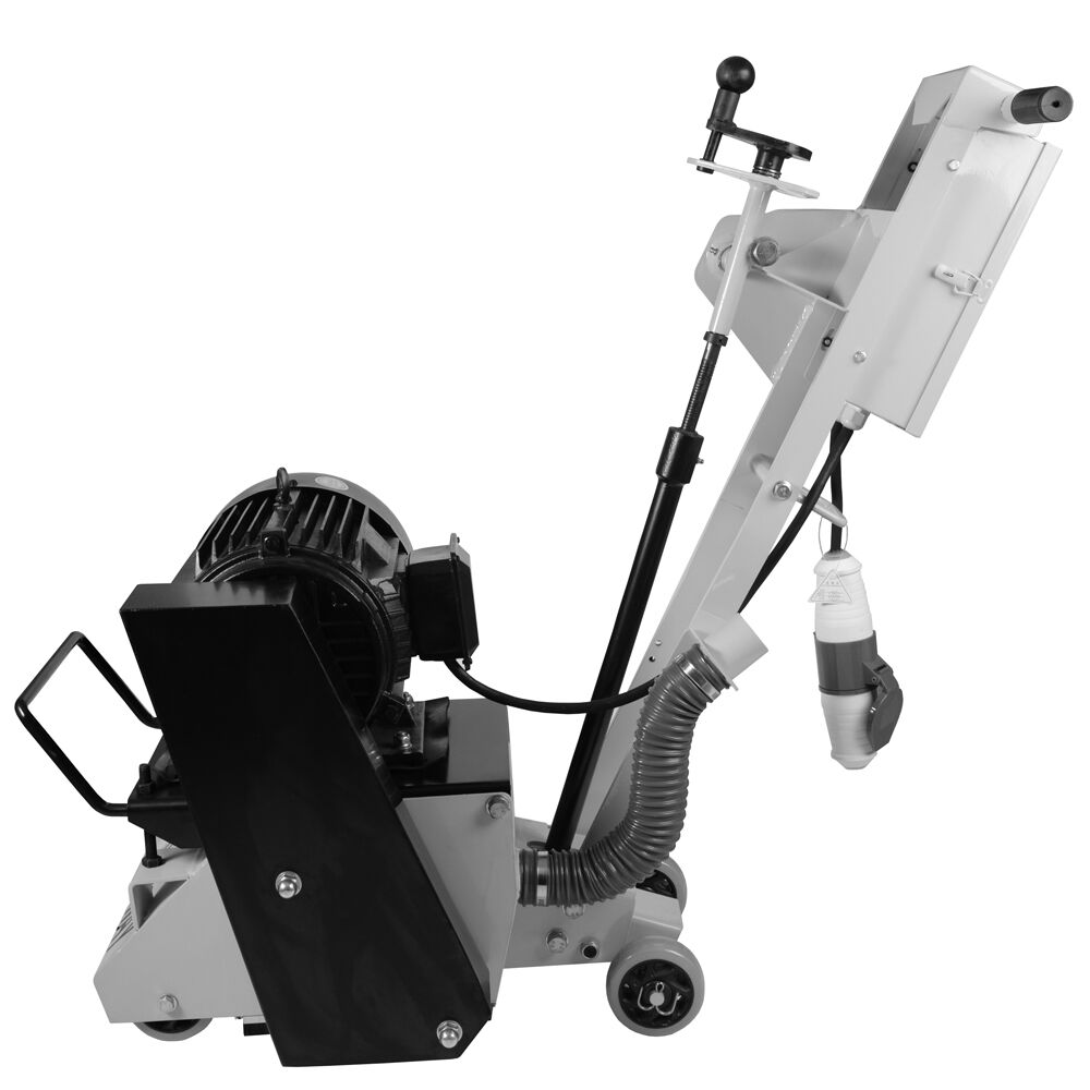 The hand held concrete floor scarifier machine’s drum with TCT cutters rotates forward at very high speed; which swings the group of cutters crashes the floor, therefore the carbide tungsten tips on the cutters mill, plan, scarifying concrete, asphalt, and epoxy resin on the floor surface.